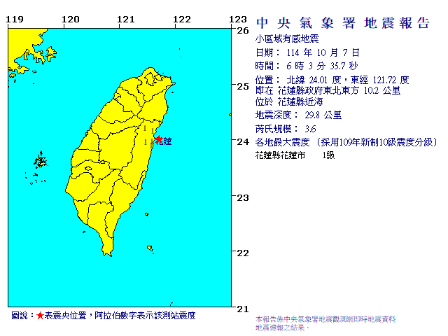 - 本報告係中央氣象署地震觀測網即時地震資料地震速報之結果。