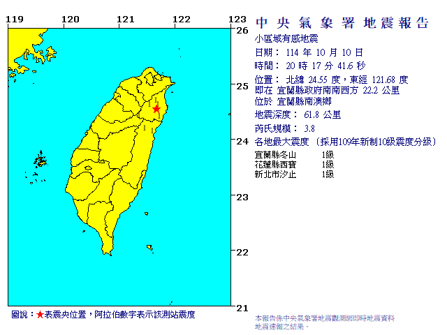本報告係中央氣象署地震觀測網即時地震資料地震速報之結果。
