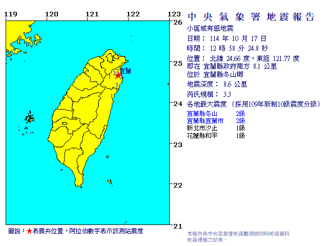- 本報告係中央氣象署地震觀測網即時地震資料地震速報之結果。