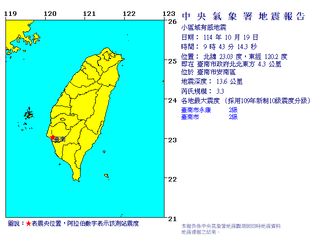 - 發震時間:2025/10/19 09:43:14