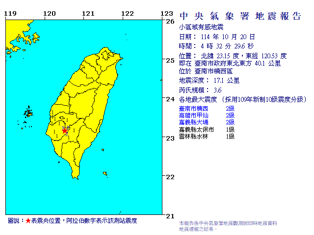 - 發震時間:2025/10/20 04:32:29
