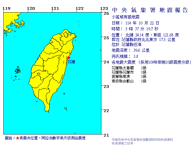 本報告係中央氣象署地震觀測網即時地震資料地震速報之結果。