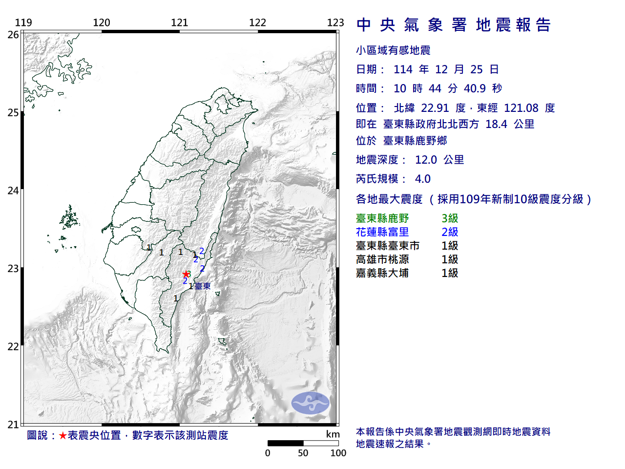 - 發震時間:2025/12/25 10:44:40