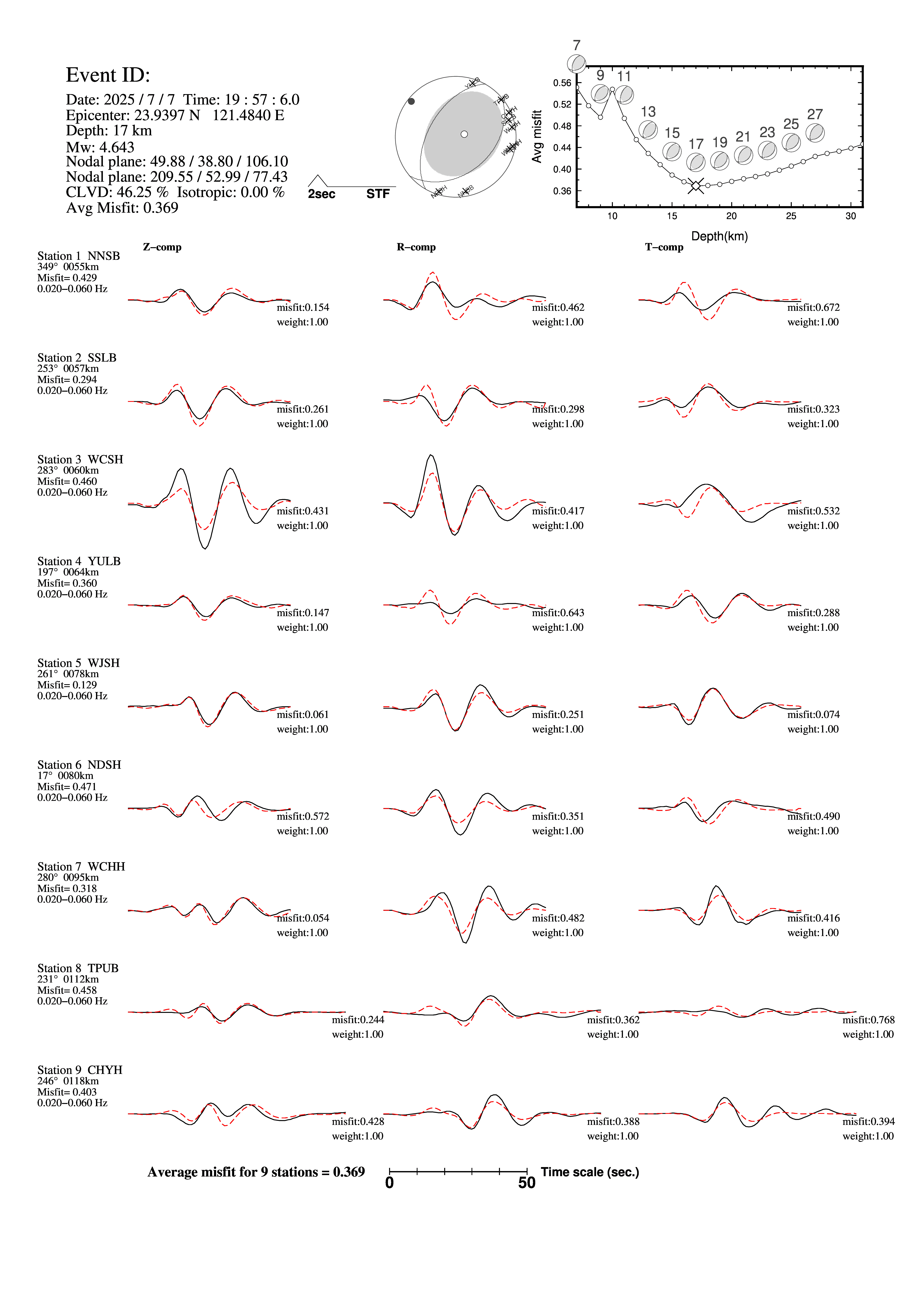 - 本報告係中央氣象署地震觀測網即時地震資料地震速報之結果。
