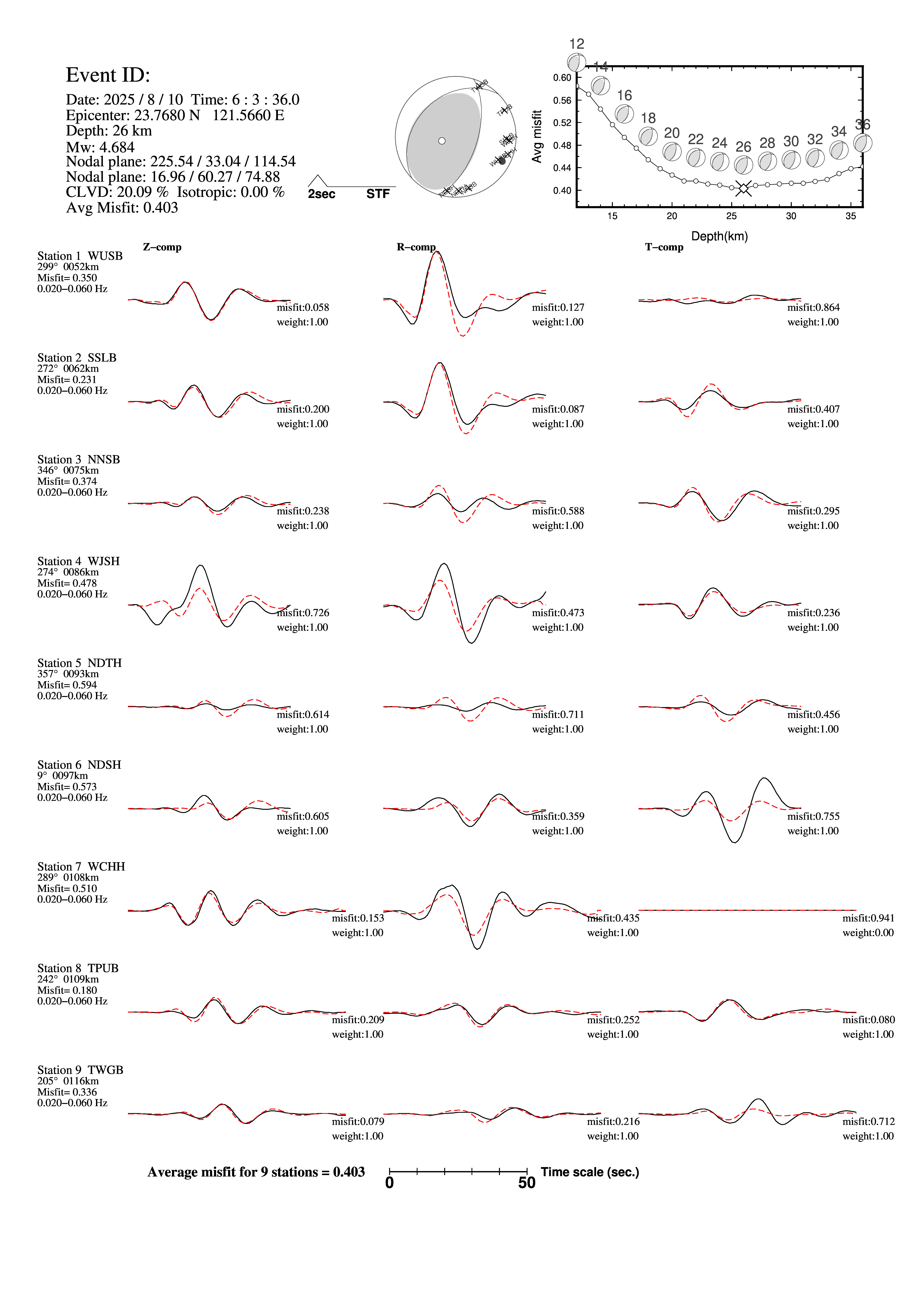 - 本報告係中央氣象署地震觀測網即時地震資料地震速報之結果。