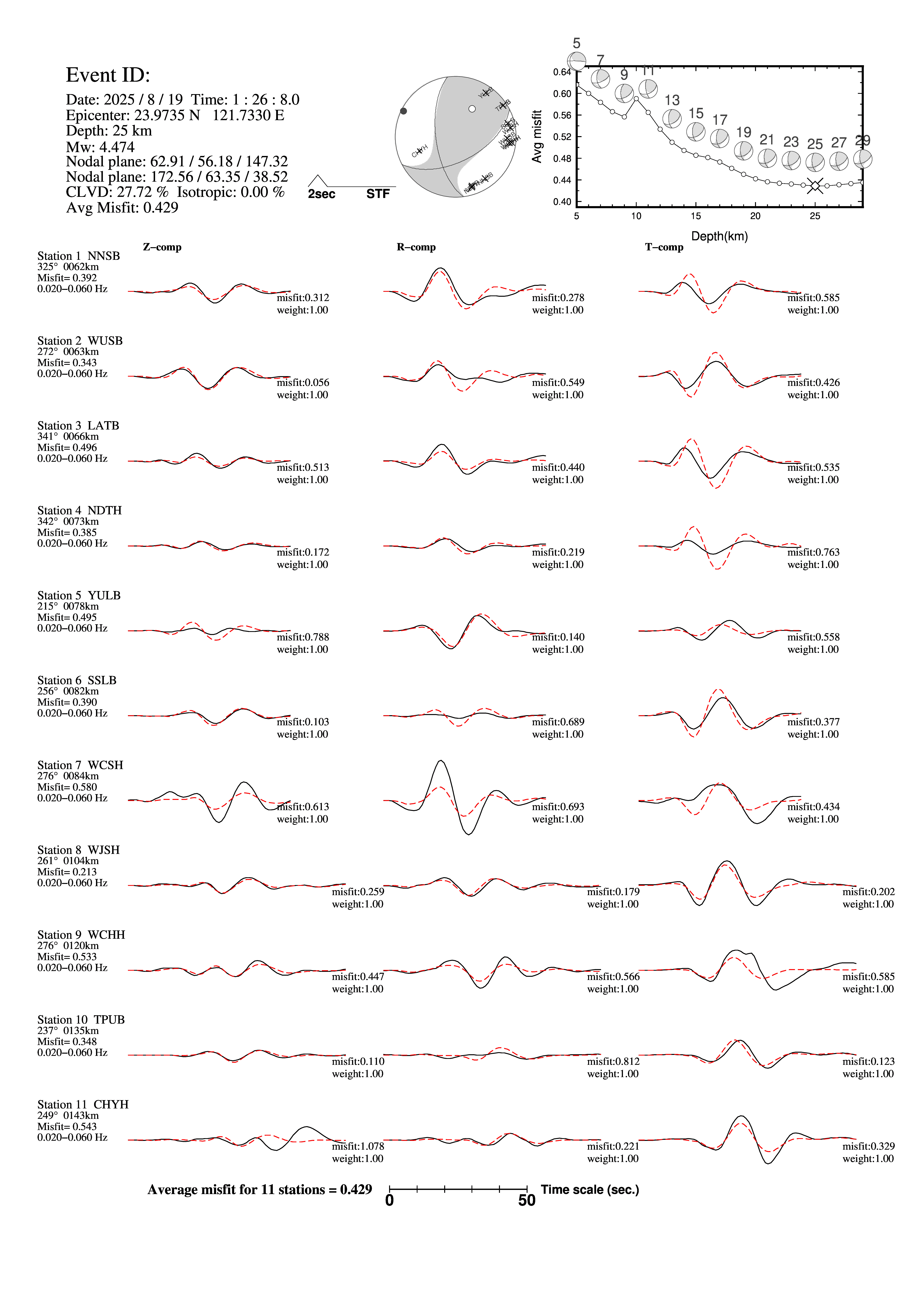 - 本報告係中央氣象署地震觀測網即時地震資料地震速報之結果。