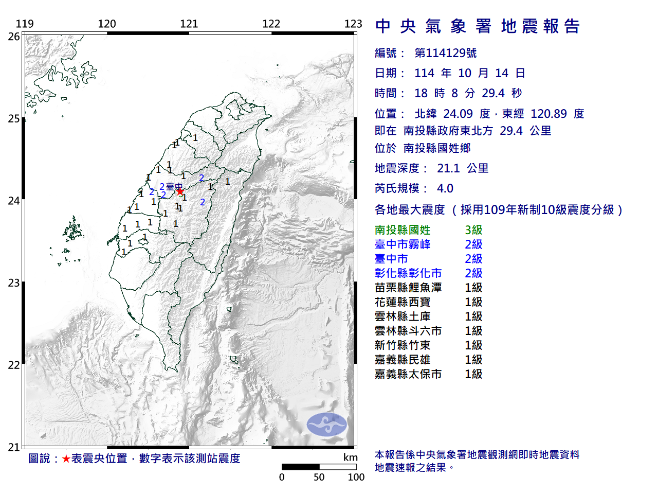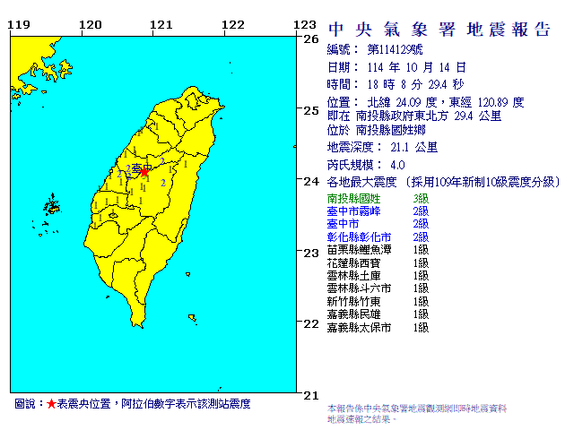 - 本報告係中央氣象署地震觀測網即時地震資料地震速報之結果。