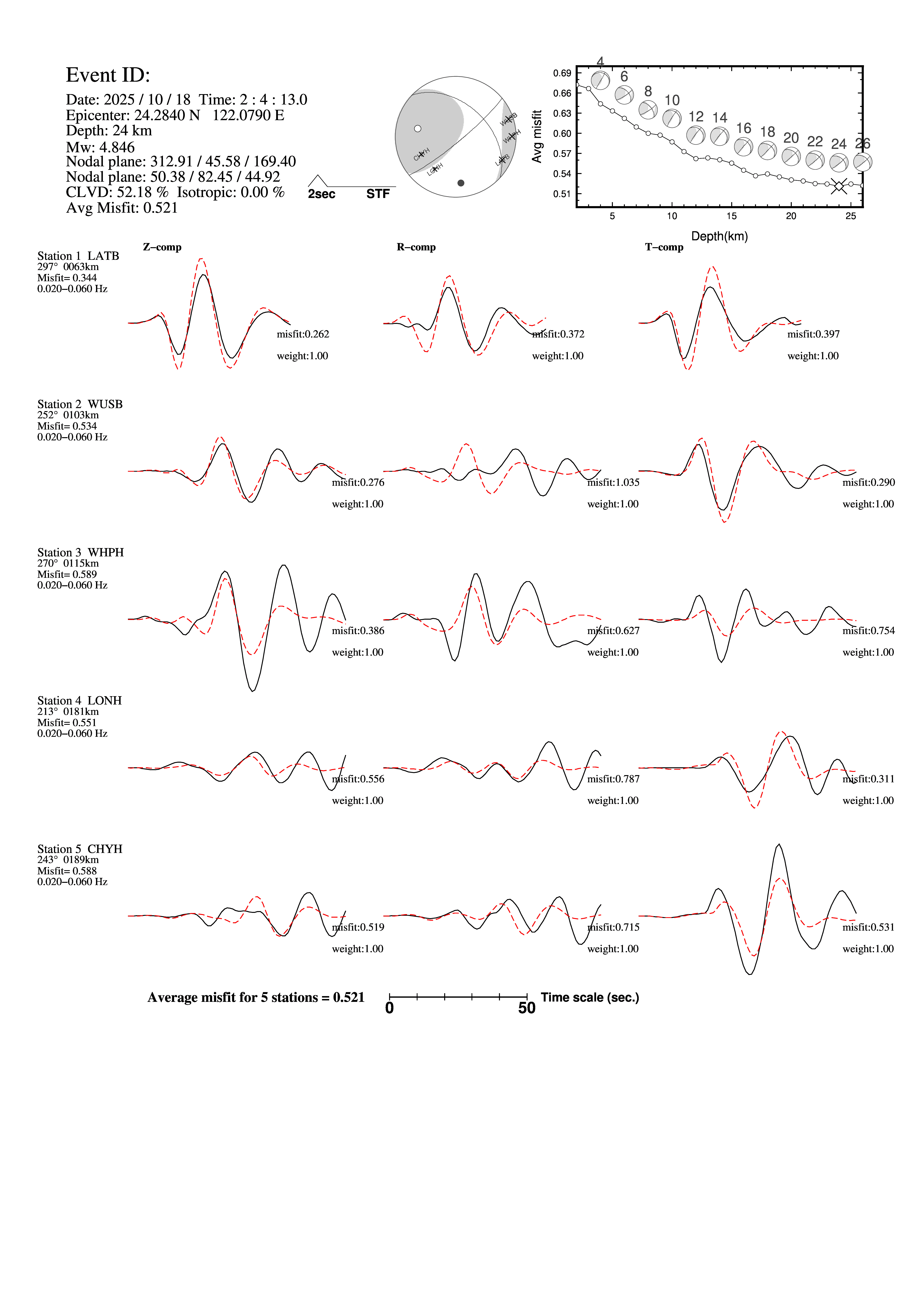 - 本報告係中央氣象署地震觀測網即時地震資料地震速報之結果。