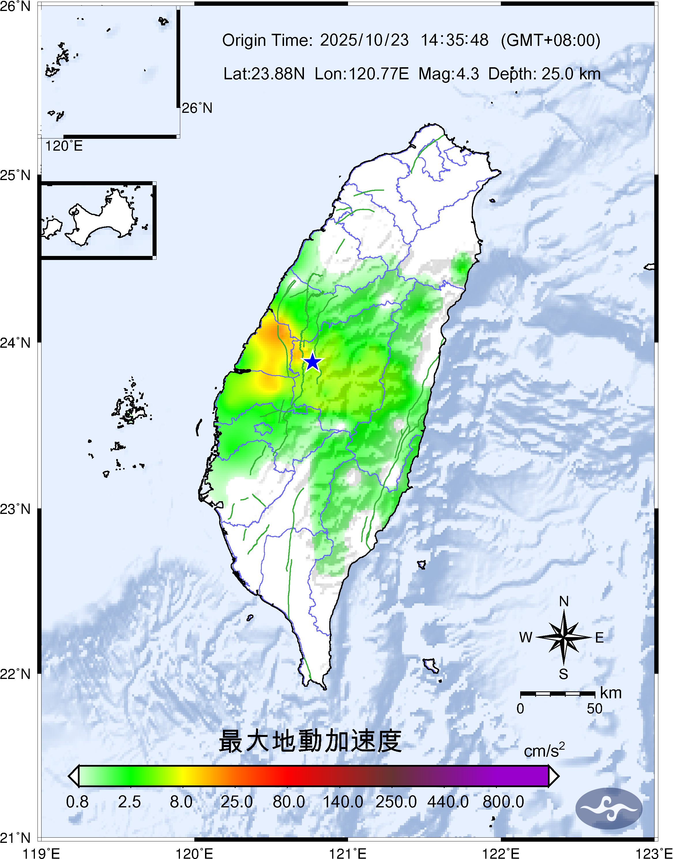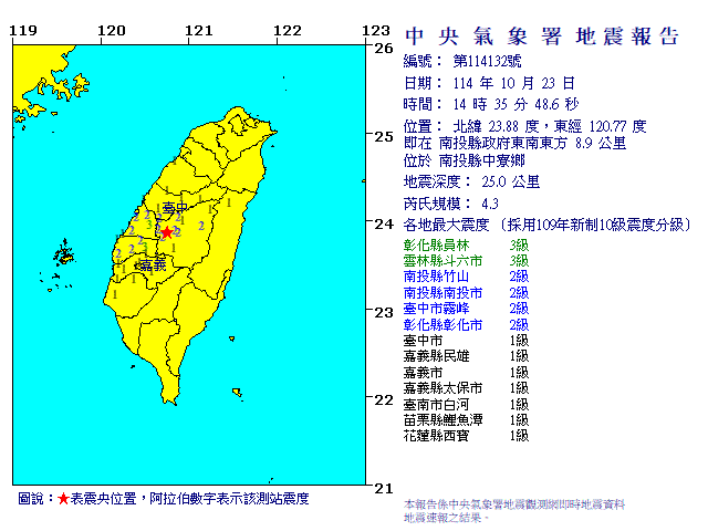 - 本報告係中央氣象署地震觀測網即時地震資料地震速報之結果。