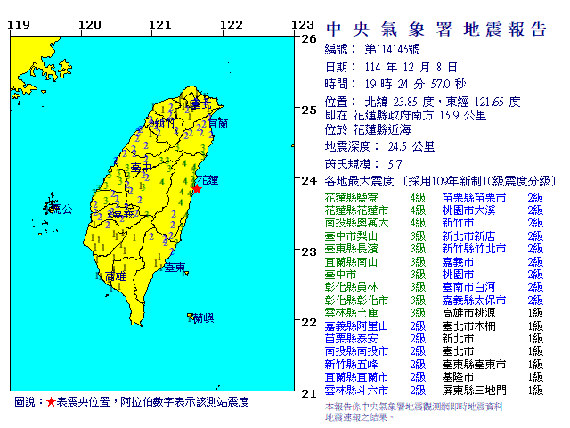 - 發震時間:2025/12/08 19:24:57