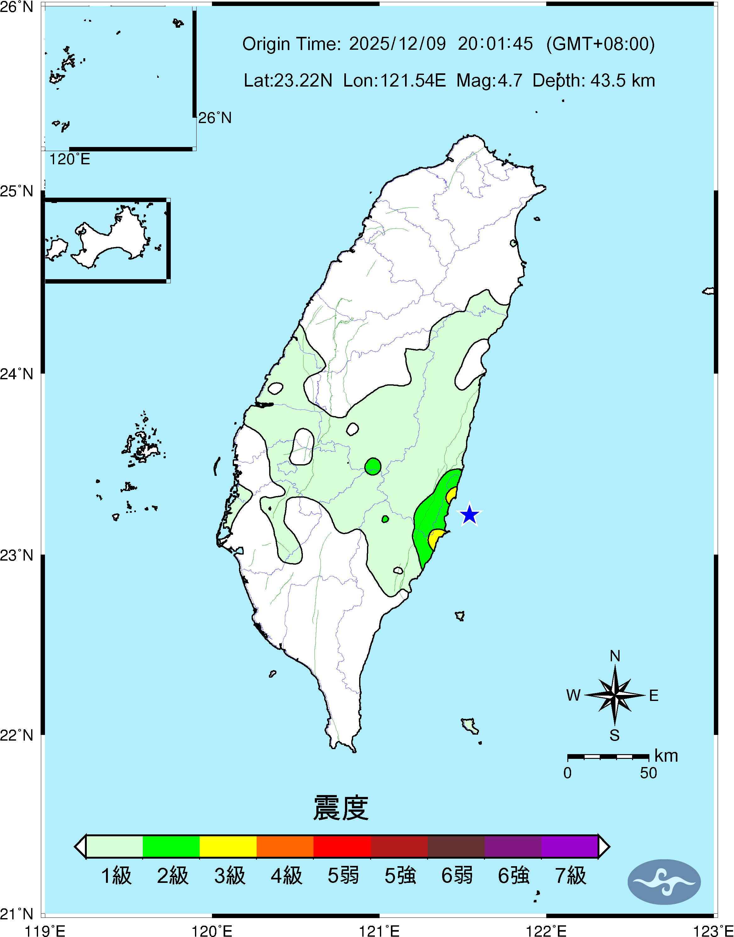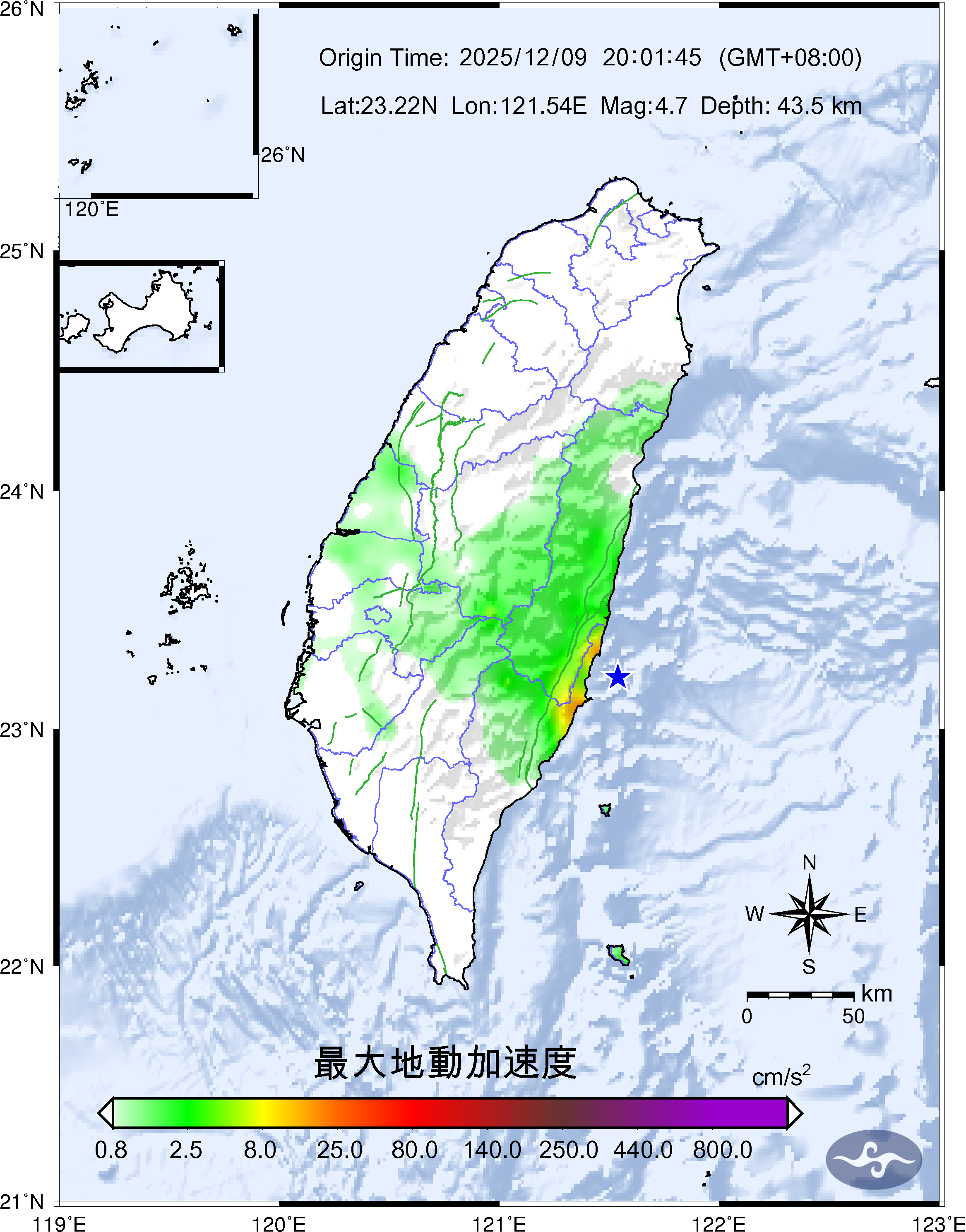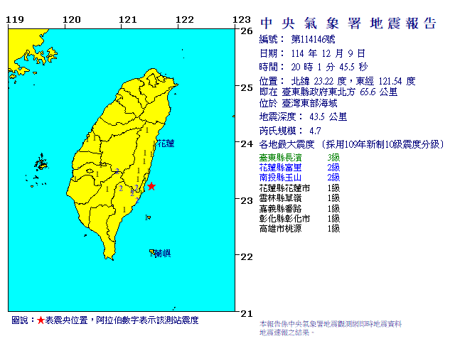 - 本報告係中央氣象署地震觀測網即時地震資料地震速報之結果。