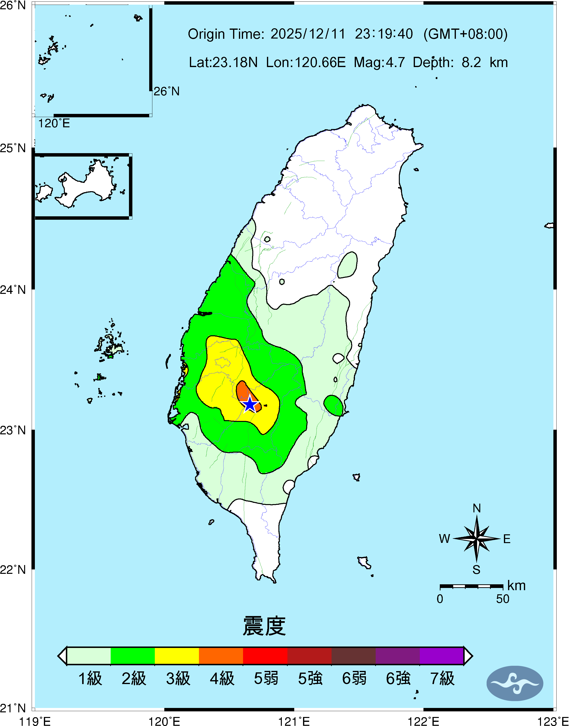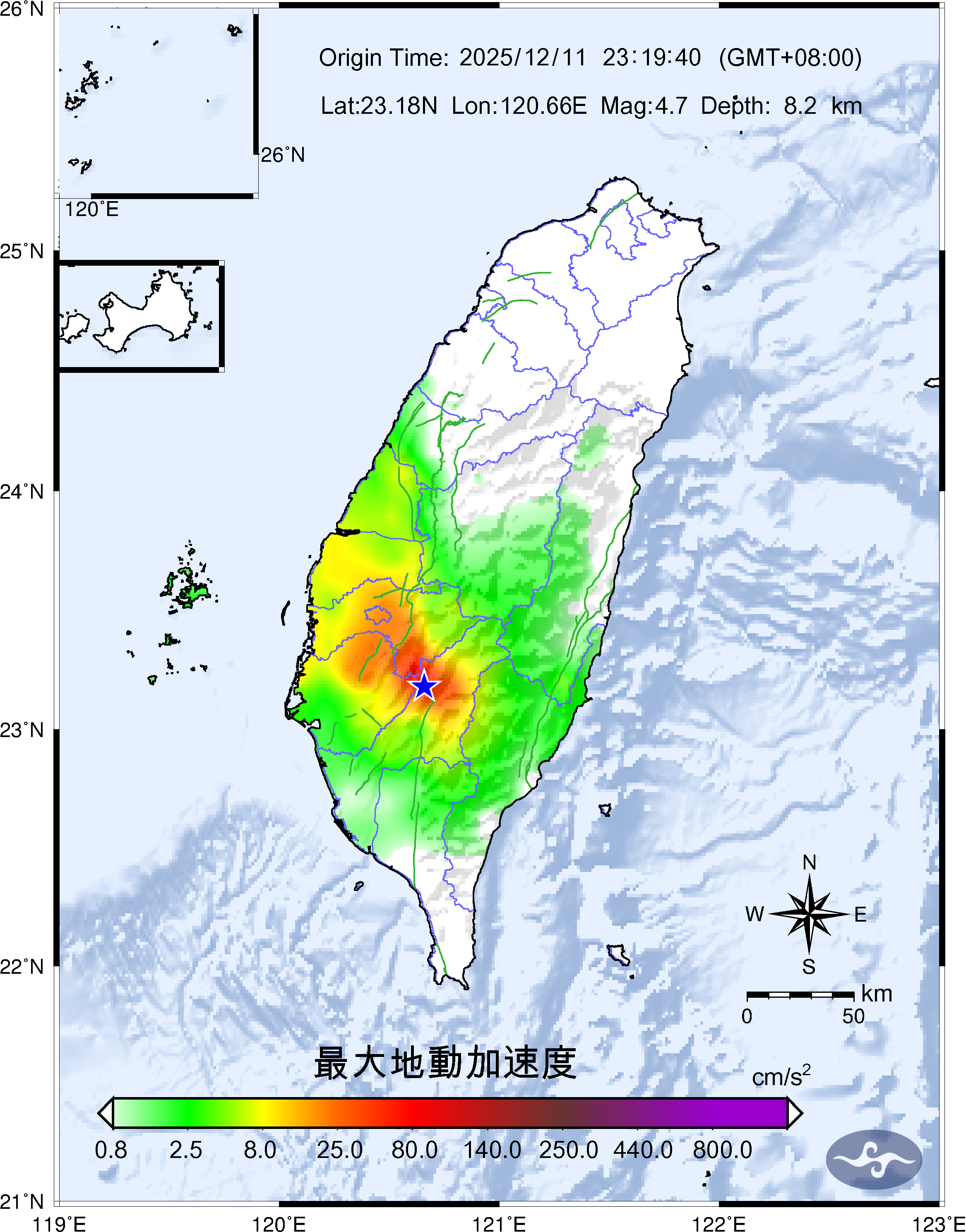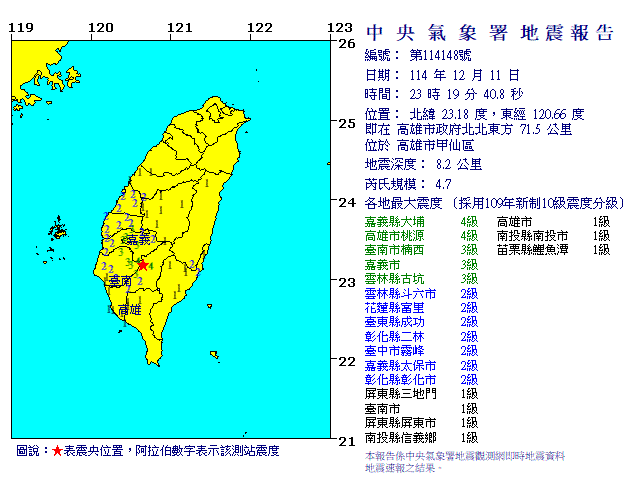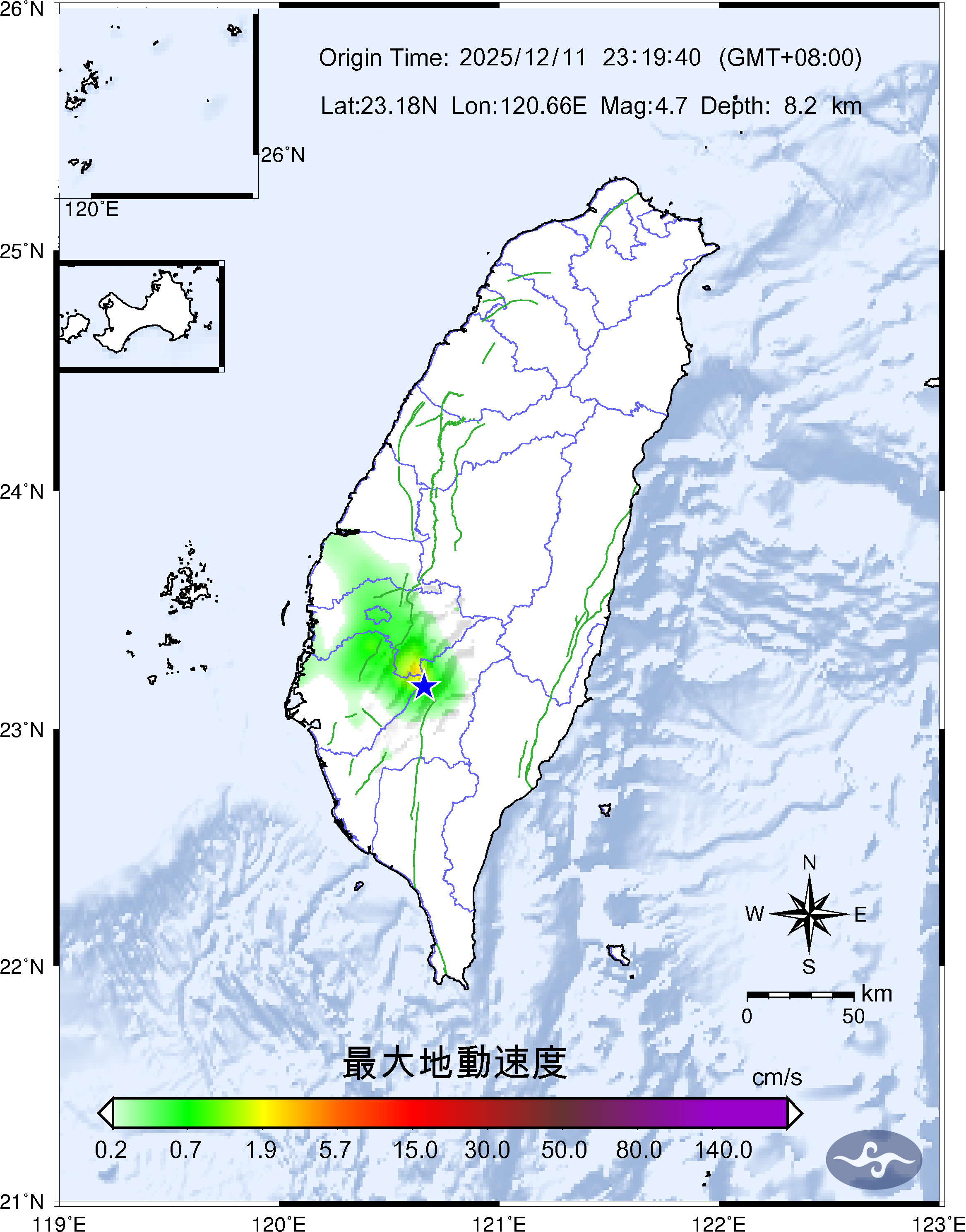 - 本起地震預估達災防告警系統(PWS)發送門檻,告警範圍:嘉義縣、嘉義市、臺南市。