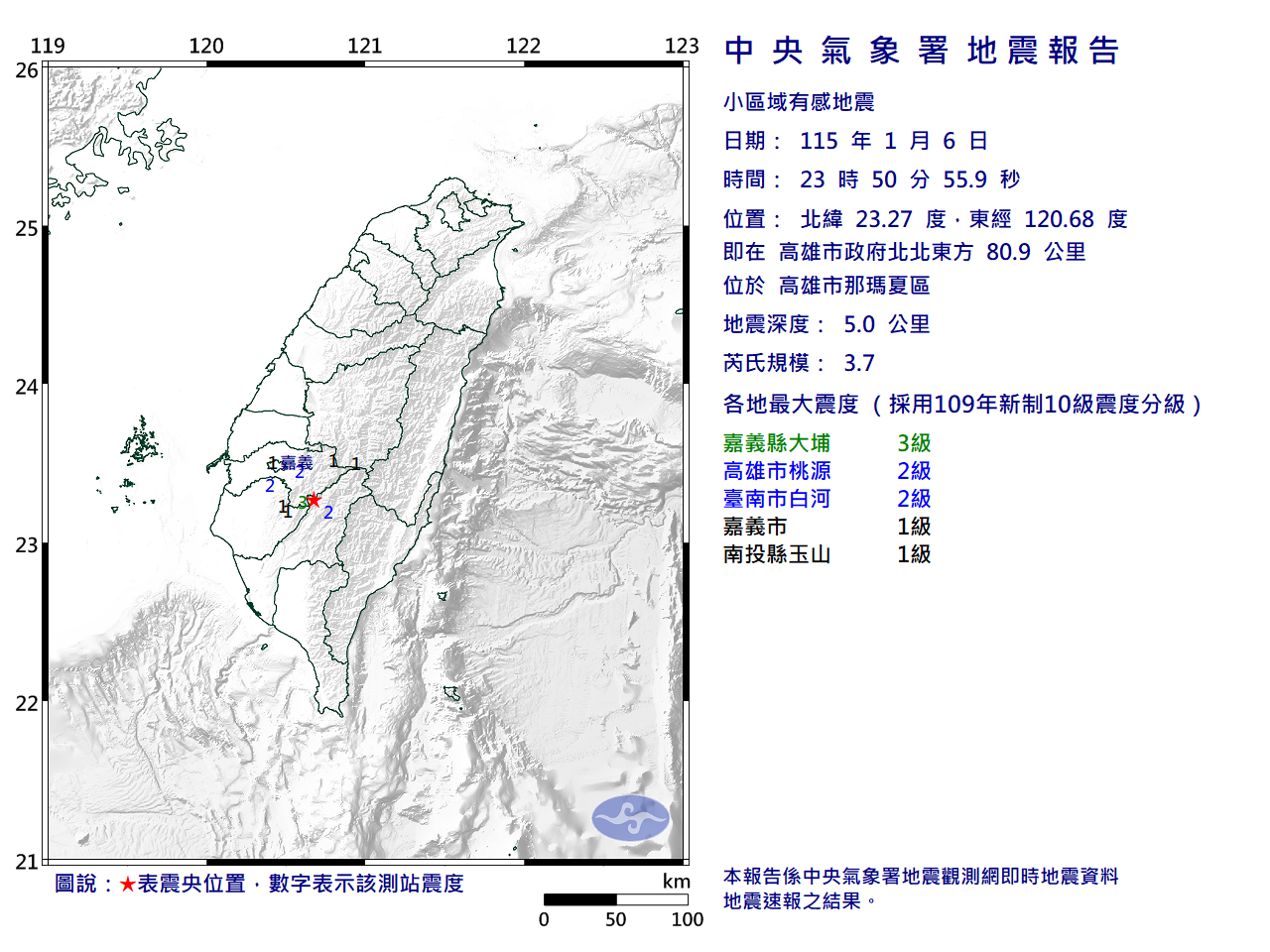 - 芮氏規模:3.7