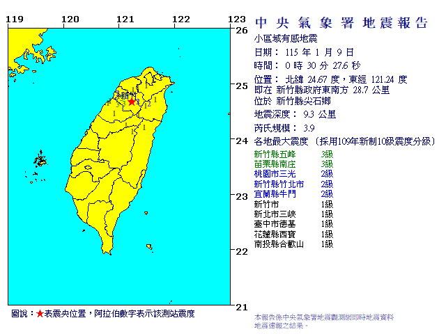 - 本報告係中央氣象署地震觀測網即時地震資料地震速報之結果。