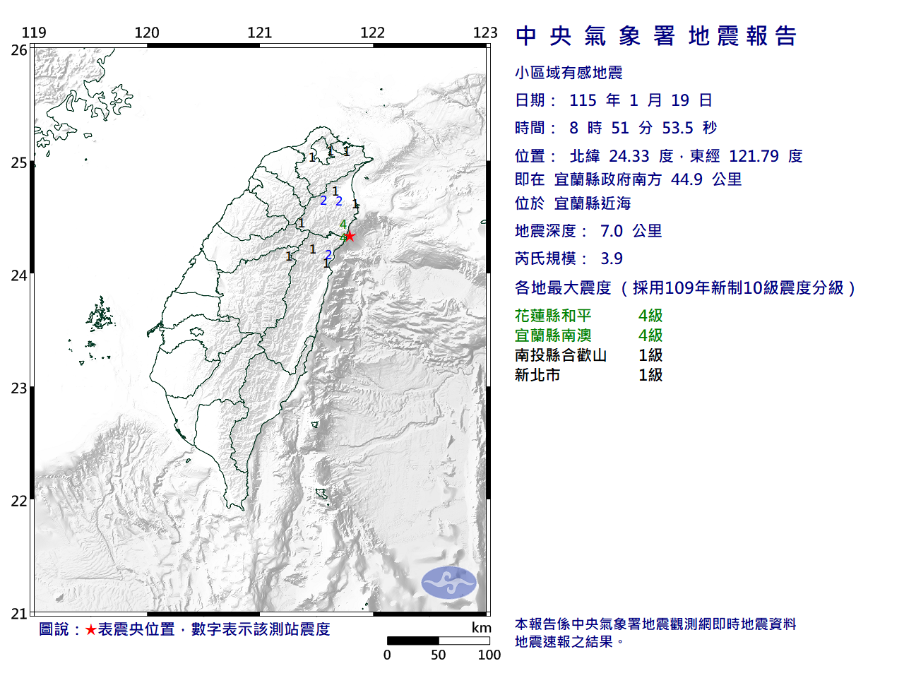 - 本報告係中央氣象署地震觀測網即時地震資料地震速報之結果。
