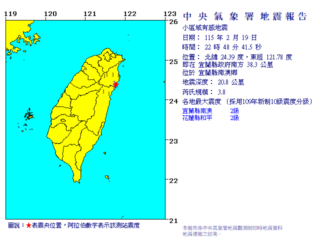 - 發震時間:2026/02/19 22:48:41