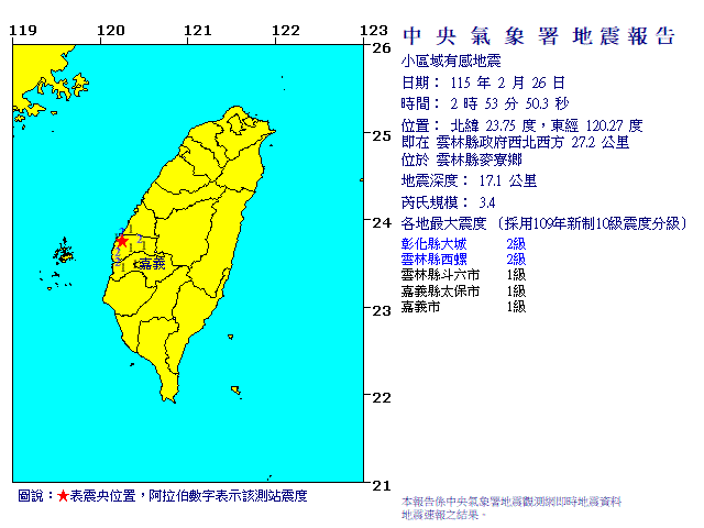 - 發震時間:2026/02/26 02:53:50