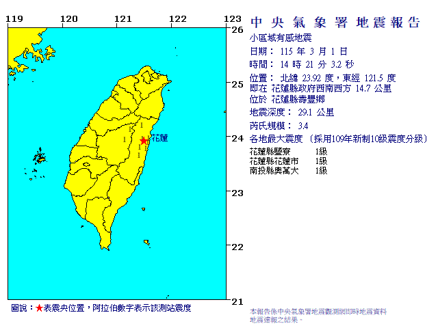 - 發震時間:2026/03/01 14:21:03