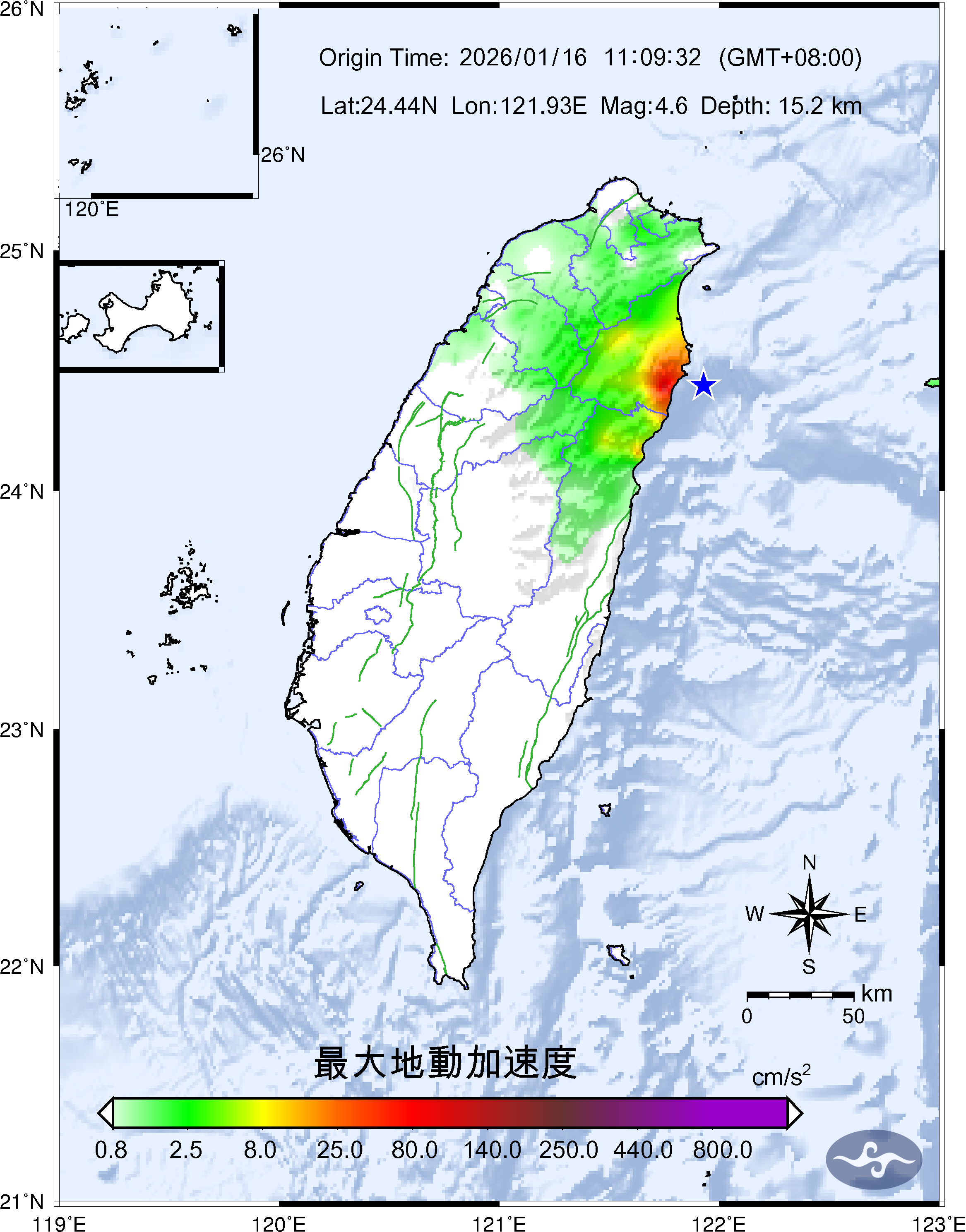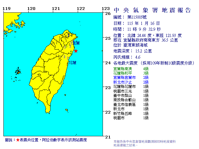 - 本報告係中央氣象署地震觀測網即時地震資料地震速報之結果。
