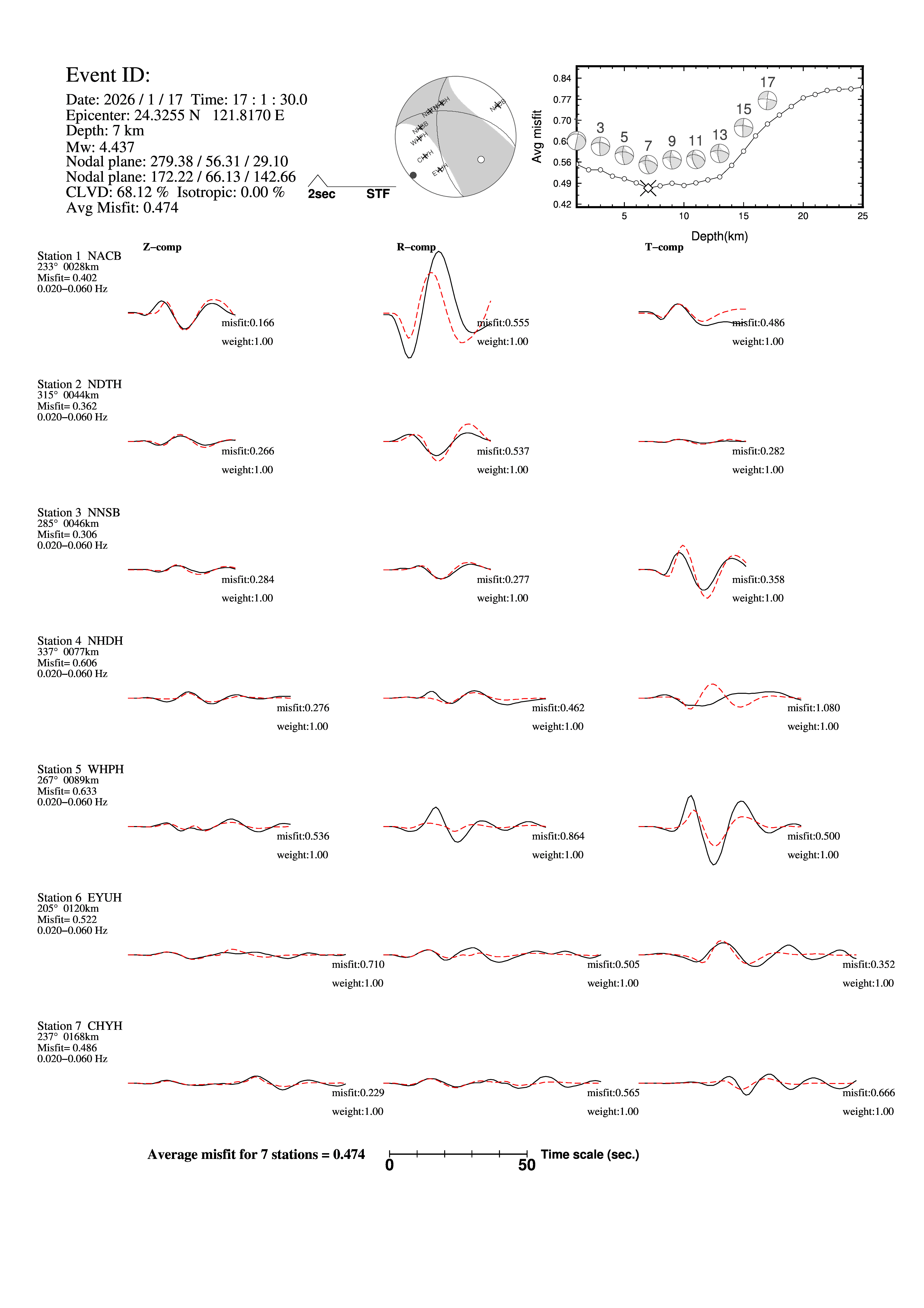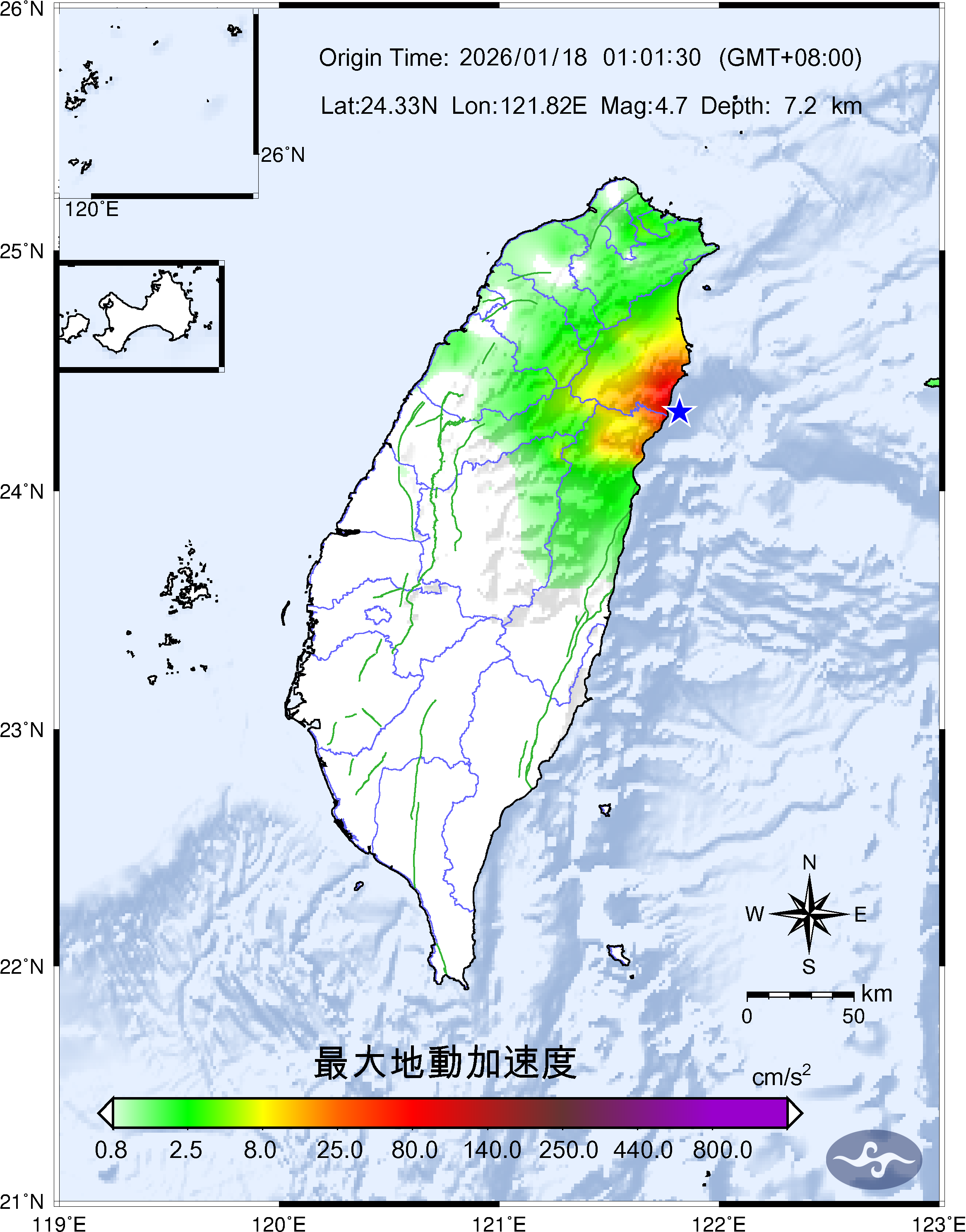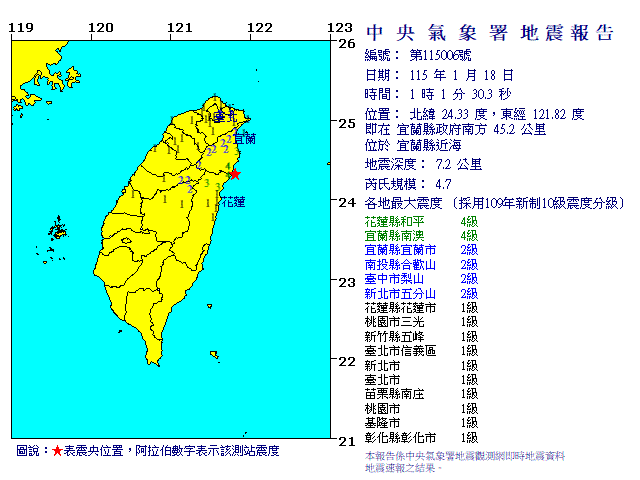 - 本報告係中央氣象署地震觀測網即時地震資料地震速報之結果。