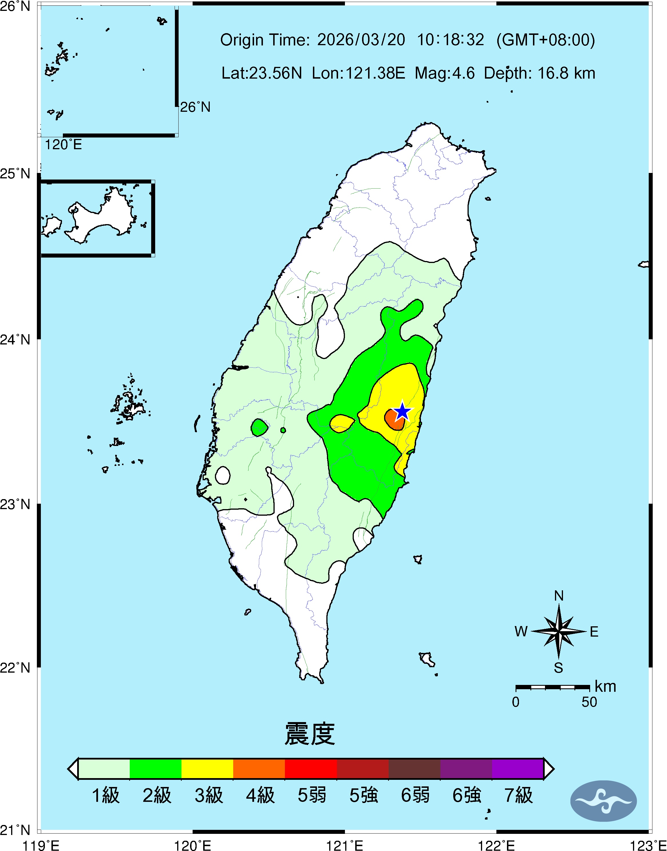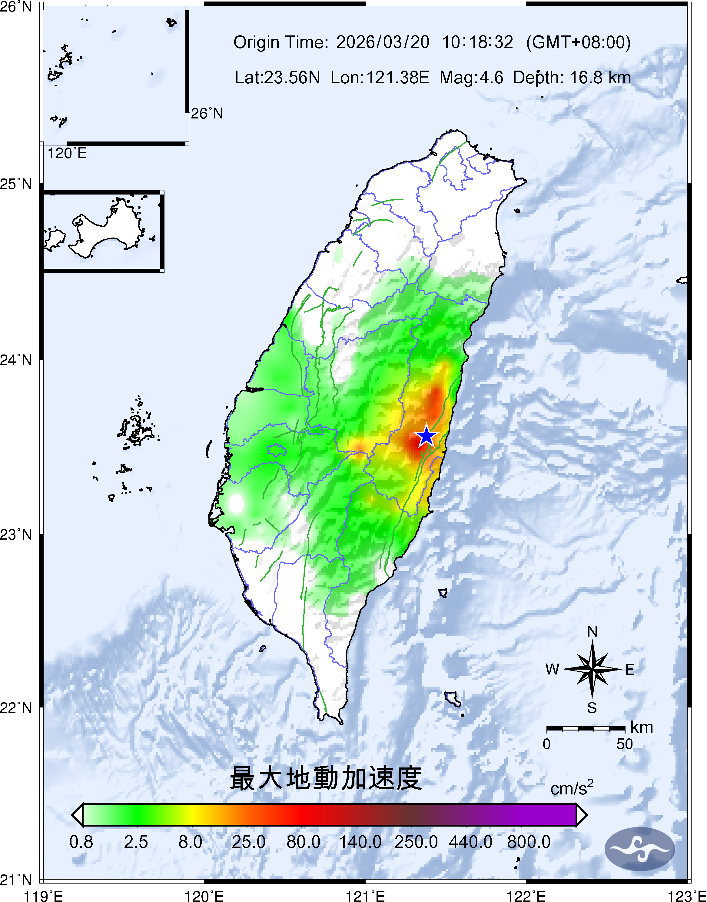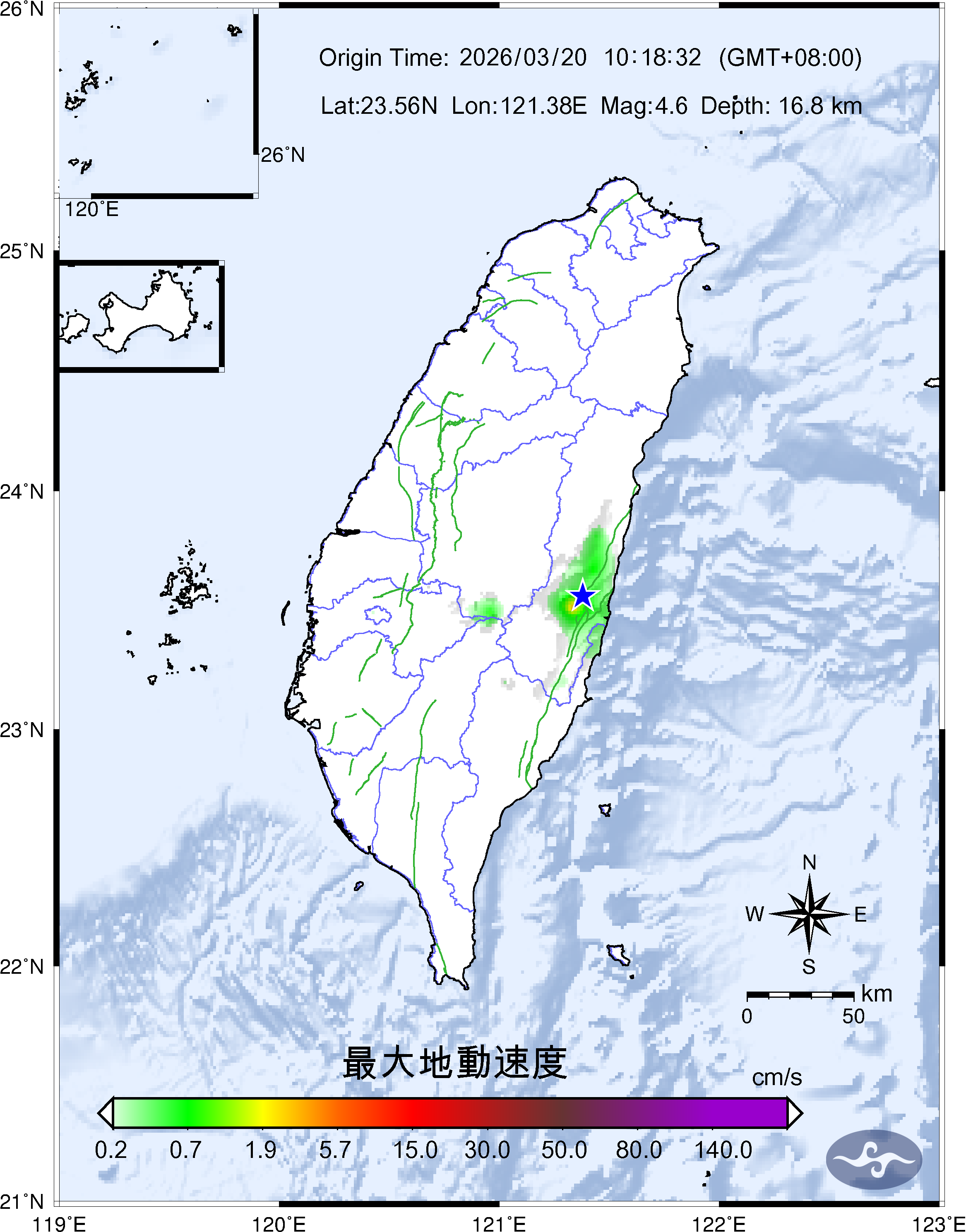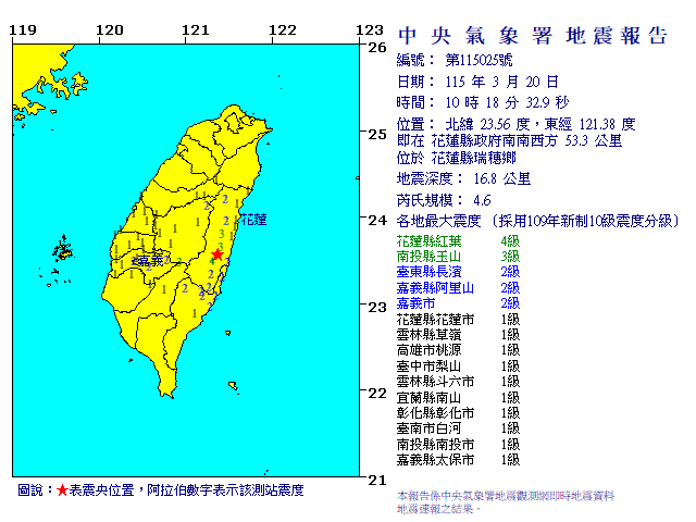 - 本報告係中央氣象署地震觀測網即時地震資料地震速報之結果。