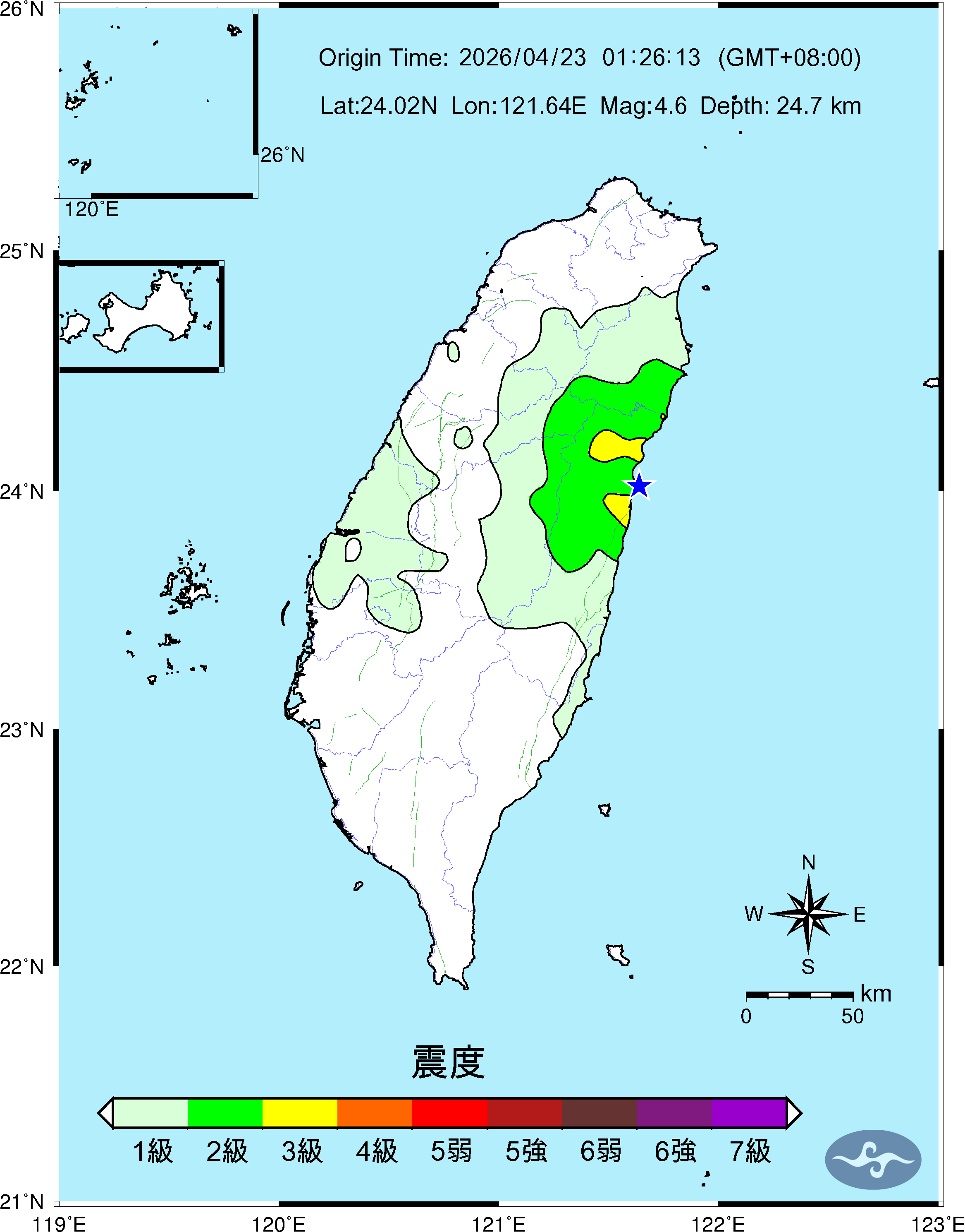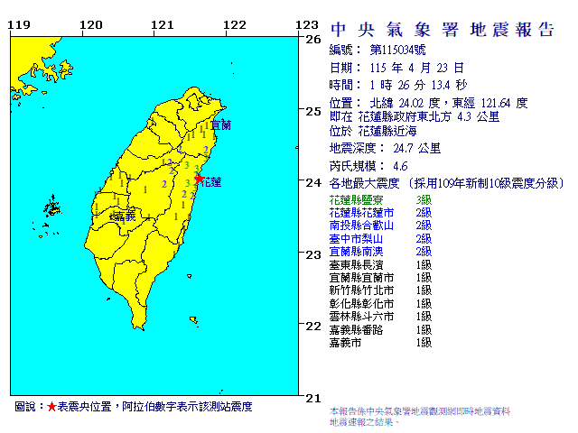 - 發震時間:2026/04/23 01:26:13